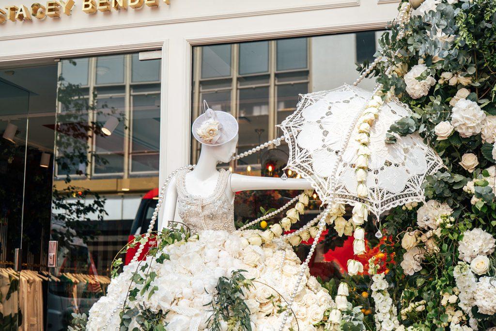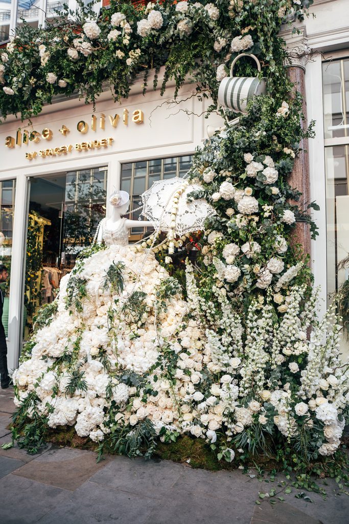 Commissioned by high end fashion brand Alice and Olivia to create their Chelsea in Bloom installation, which coincided with a new store opening on The King’s Road in May 2025, we translated the original design into a frothy white floral extravaganza.
