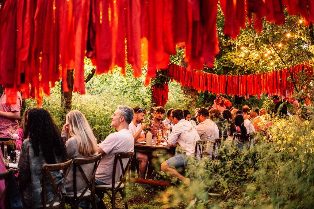 Marking the launch of Red Bull Pink Edition, June 24 saw the red bull team descend on Osea Island for a two day corporate extravaganza. The main event focusing on the ultimate woodland dinner party. Thirty rustic tables were placed along the meadow.